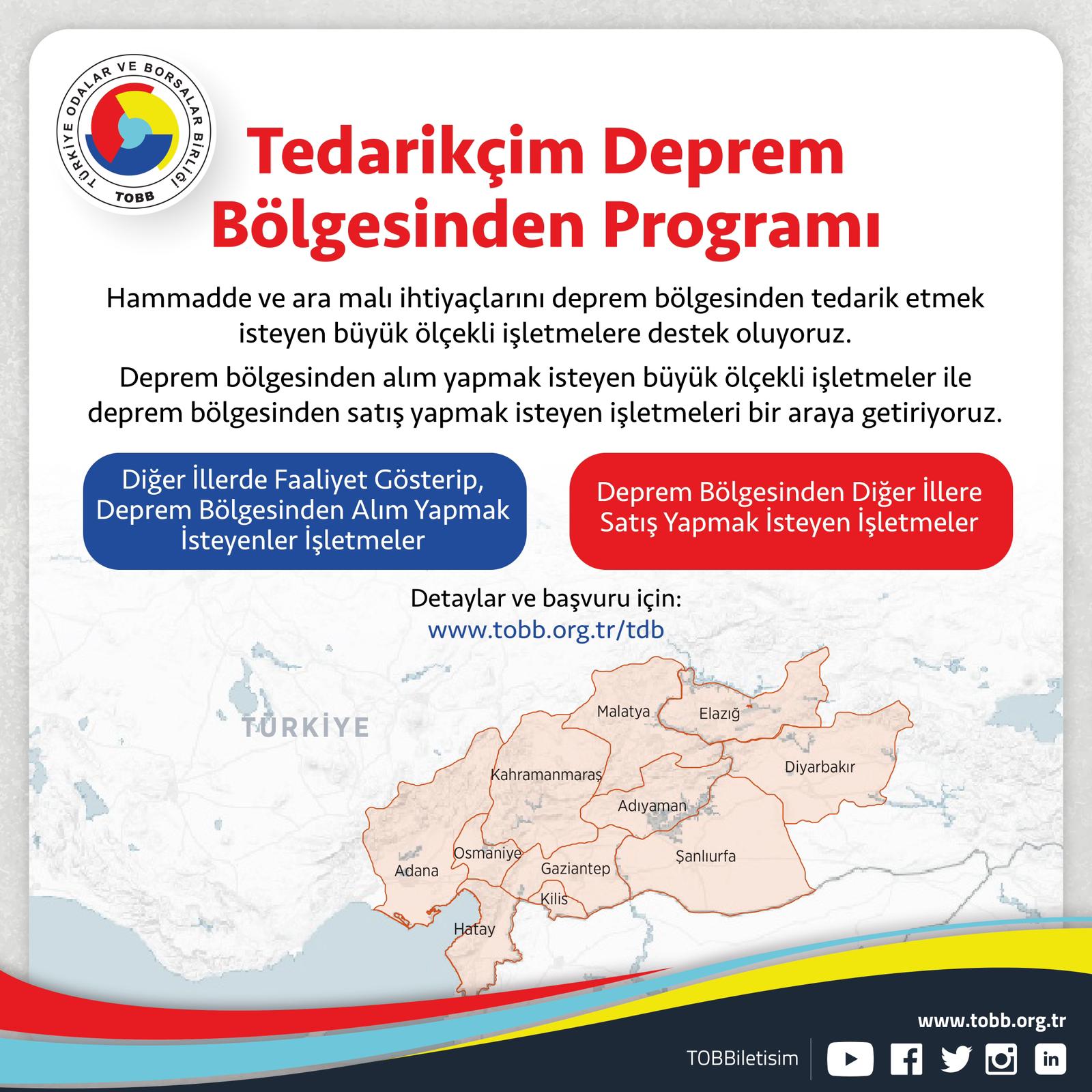 Malumunuz olduğu üzere; deprem bölgesinde sanayi, ticaret ve istihdamın yeniden canlandırılması, deprem bölgesinde faaliyet gösteren şirketlerin daha hızlı toparlanması amacıyla Birliğimiz tarafından “Tedarikçim