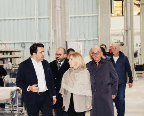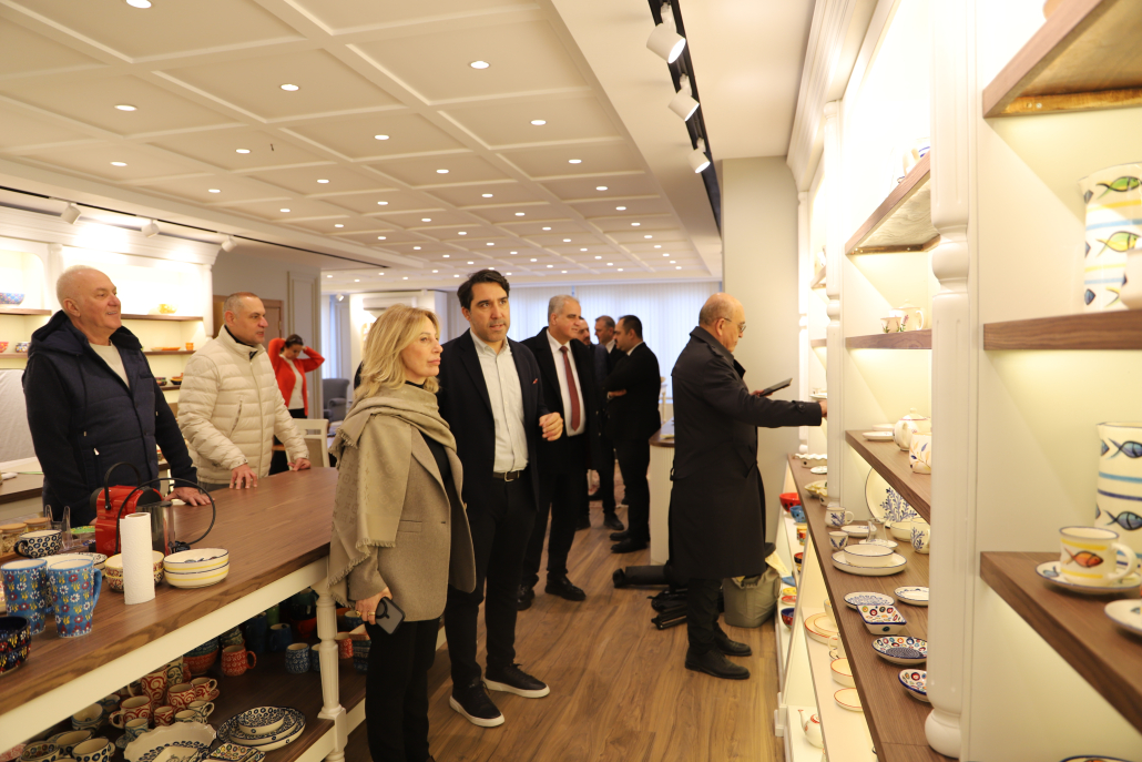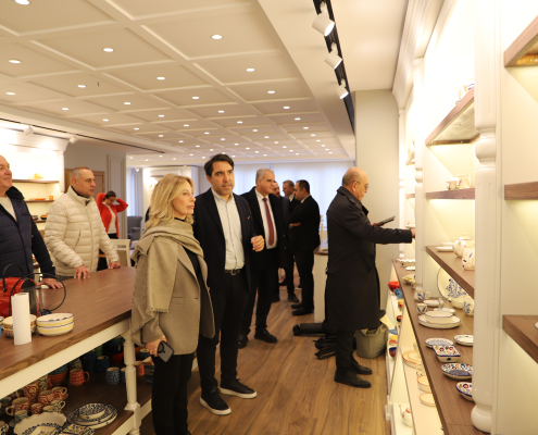 Kütahya Ticaret ve Sanayi Odası Yönetim Kurulu Başkanı Esin Güral Argat başkanlığında; KUTSO Yönetim Kurulu Başkan Vekili ve Kütahya OSB Yönetim Kurulu Başkan Yardımcısı Emin Yüce, KUTSO Yönetim Kurulu Sayman Üyesi ve Kütahya OSB Yönetim Kurulu Başkanı Tolga Eskioğlu, KUTSO Yönetim Kurulu Üyeleri Fatih Alkış ve Ahmet Saner Gönül ile Kütahya OSB Yönetim Kurulu Üyeleri Süleyman Ölçer ve Ali Alper Olgun katılımında, Kütahya Organize Sanayi Bölgesi’nde faaliyet gösteren Aydın El Sanatları Fabrikası ziyaret edildi.